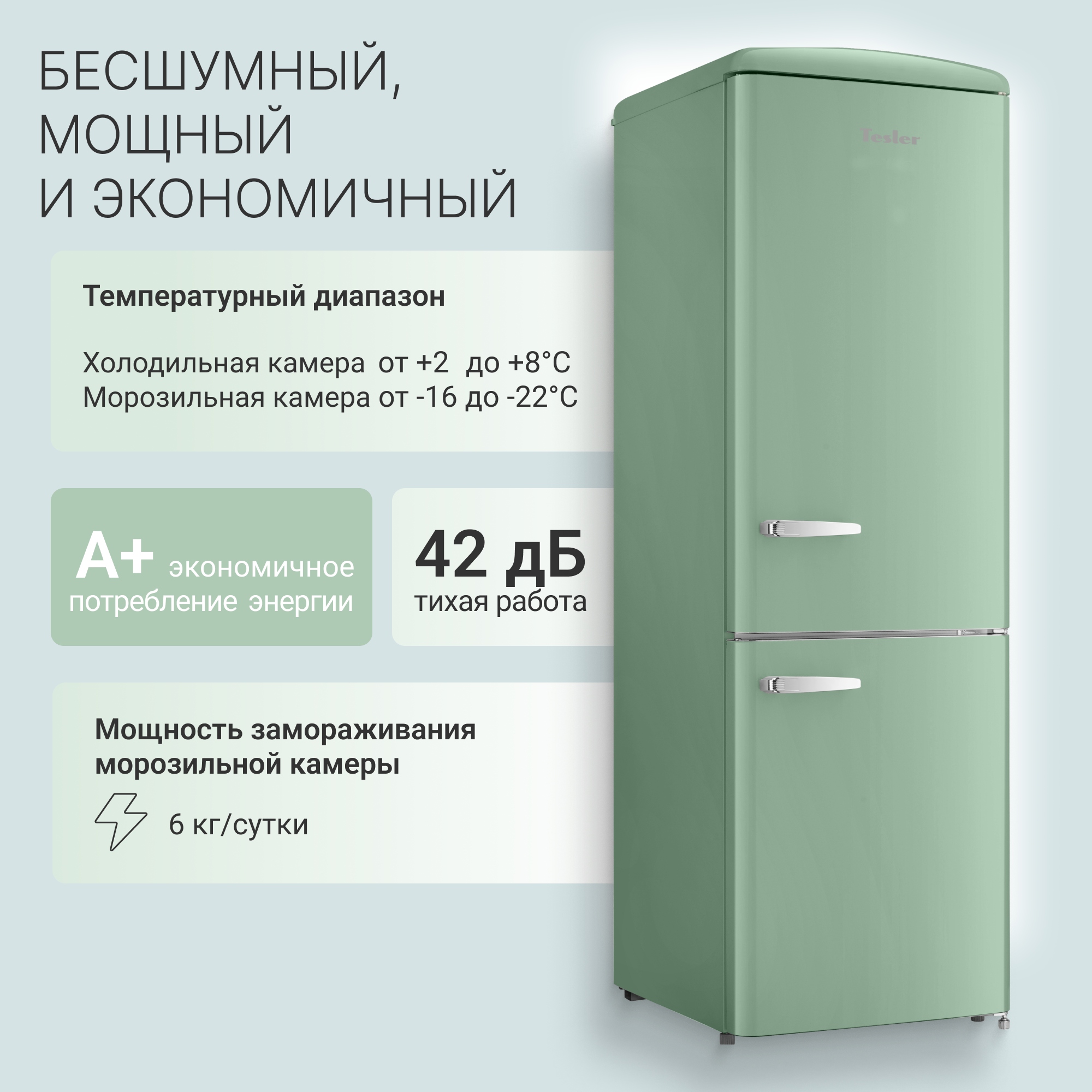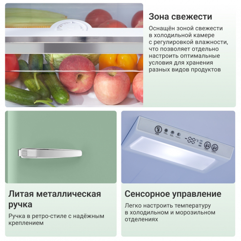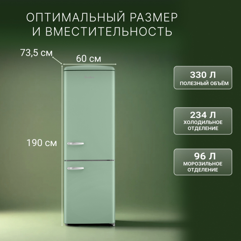 Холодильник с ретро-дизайном Tesler RB-335 это гармоничное сочетание стиля и современной функциональности. Модель, вдохновлённая эстетикой 60-х годов, станет ярким акцентом интерьера и подчеркнёт индивидуальность кухни. Лаконичные формы, оригинальные модные оттенки, литые металлические ручки придают холодильнику особый облик и уникальность.