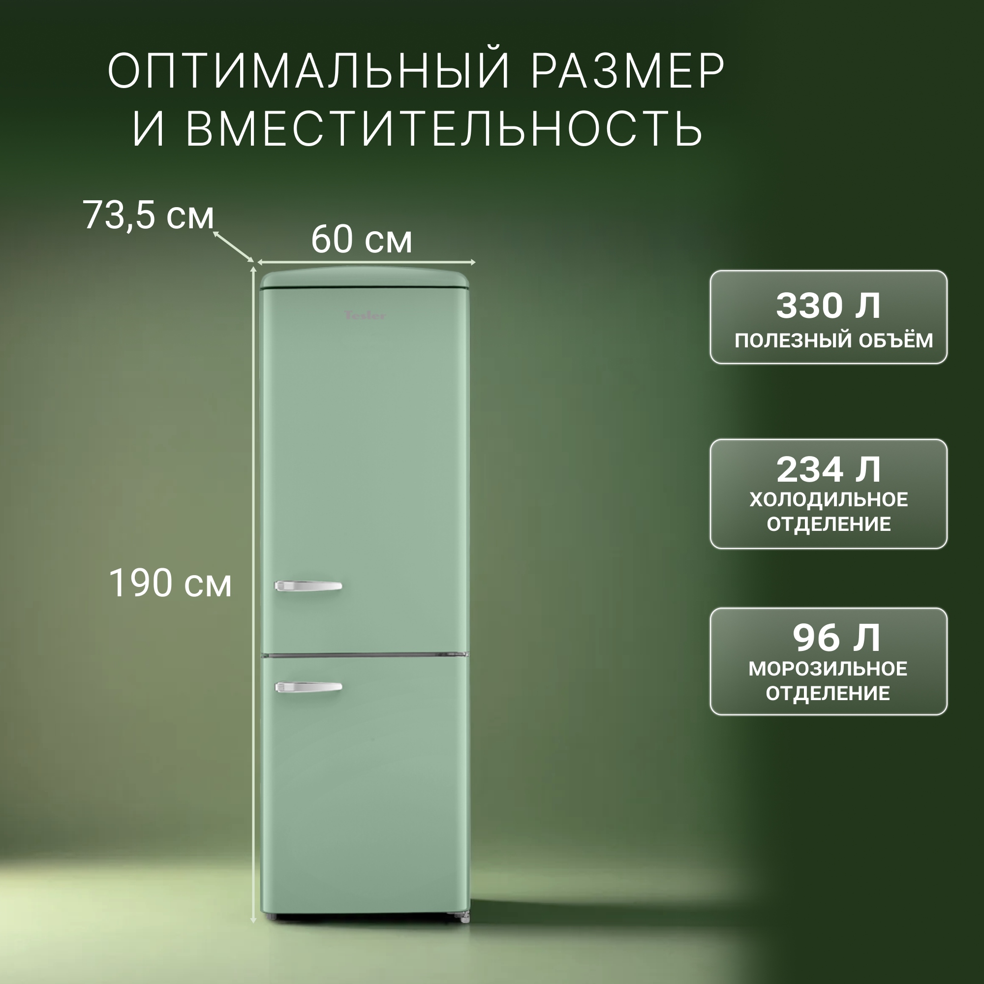 Ретро-холодильник Tesler RB-335 - это гармония эстетики и инноваций. Он создан для тех, кто ценит выразительный дизайн и современные технологии в равной степени. Стиль 60-х, проработанные детали и актуальный функционал делают эту модель идеальным выбором для интерьеров, где важны и форма и содержание.