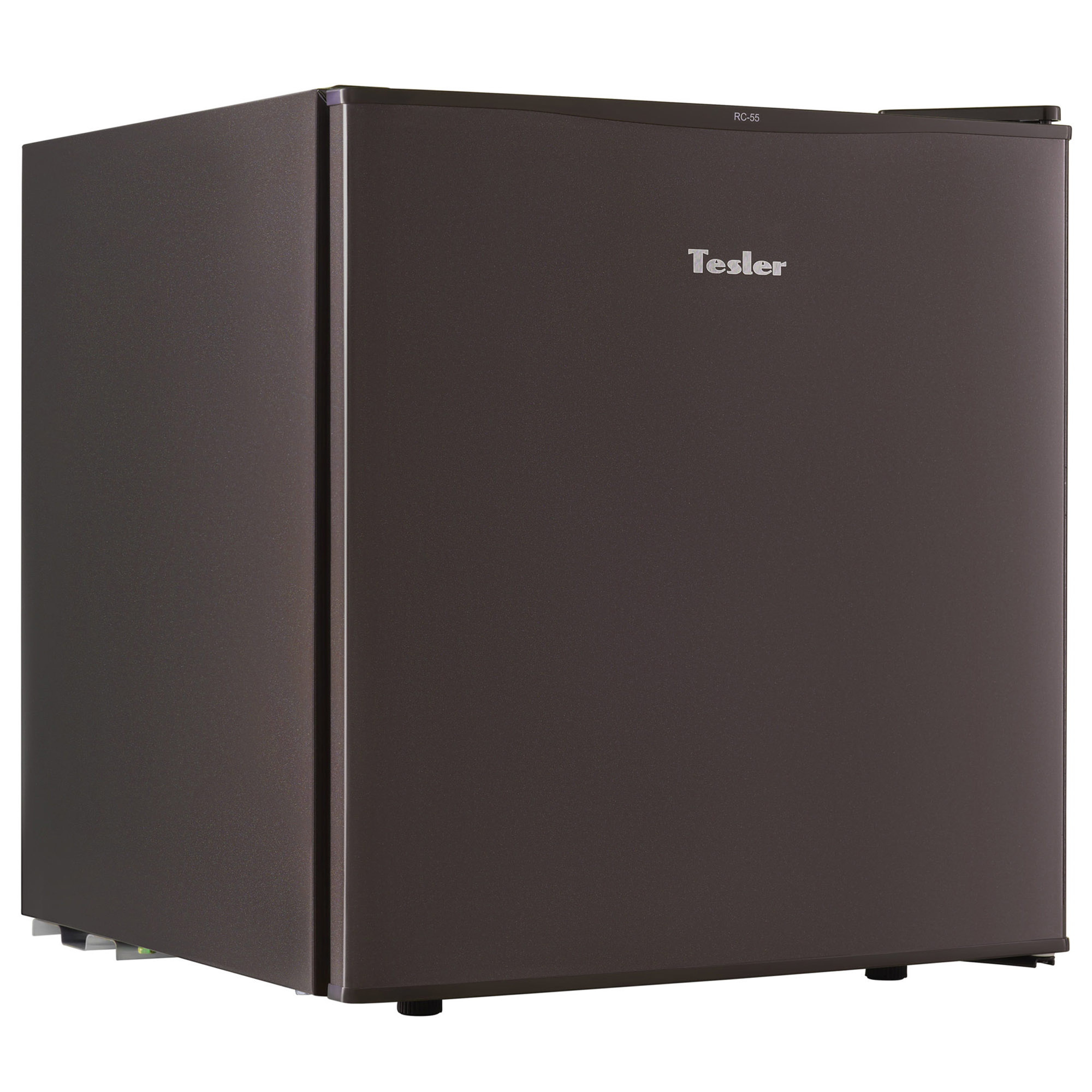 Компактный однокамерный холодильник Tesler RC-55 можно легко разместить дома, на даче, в офисе или гостинице. Несмотря на размеры, он оборудован небольшим морозильным отделением. К плюсам модели можно также отнести низкое энергопотребление, низкий уровень шума и возможность подбора под интерьер благодаря широкой цветовой гамме (белый, серебристый, чёрный, дерево, тёмно-синий, красный, тёмно-коричневый). Компактные размеры, превосходное качество сборки и материалов, надежность и приятный внешний вид делают мини-холодильники серии RC-55 отличным вариантом для установки внутри тумб, шкафов, столов и другой мебели. Модель начального уровня, входит в бюджетную категорию и является очень востребованной благодаря своей доступности и внешнему виду.