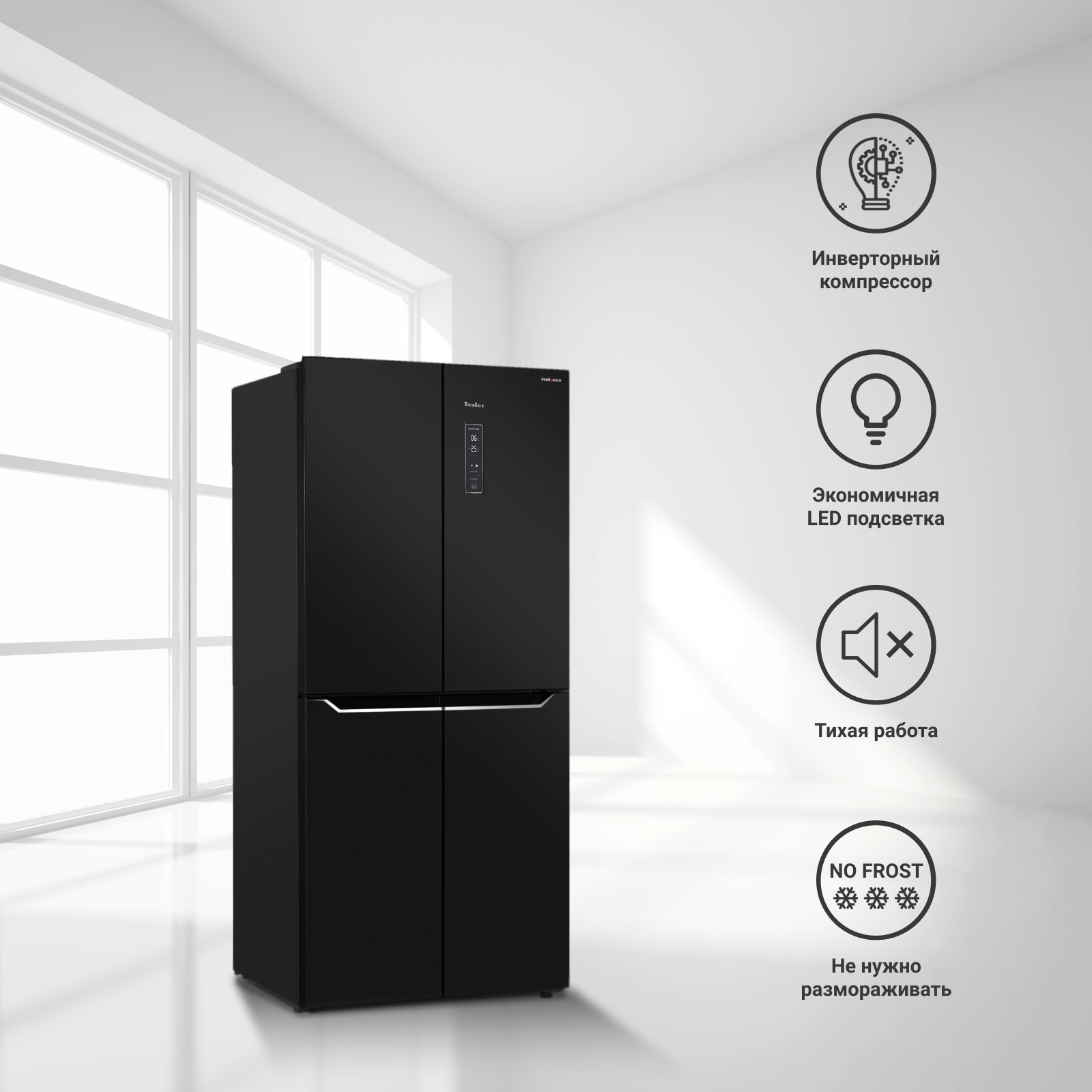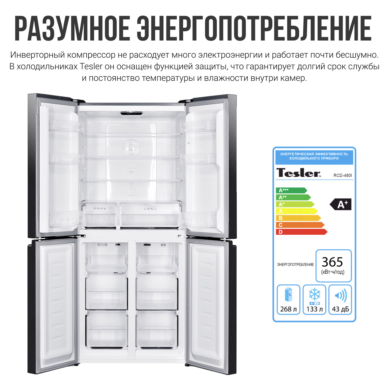 TESLER RCD-480I - это надежная техника для современной кухни. Он чрезвычайно элегантно выглядит и дает возможность хранить большие запасы продуктов. В моделях серии Intelligence используются самые новые технологии, что нашло отражение в их функциональности.