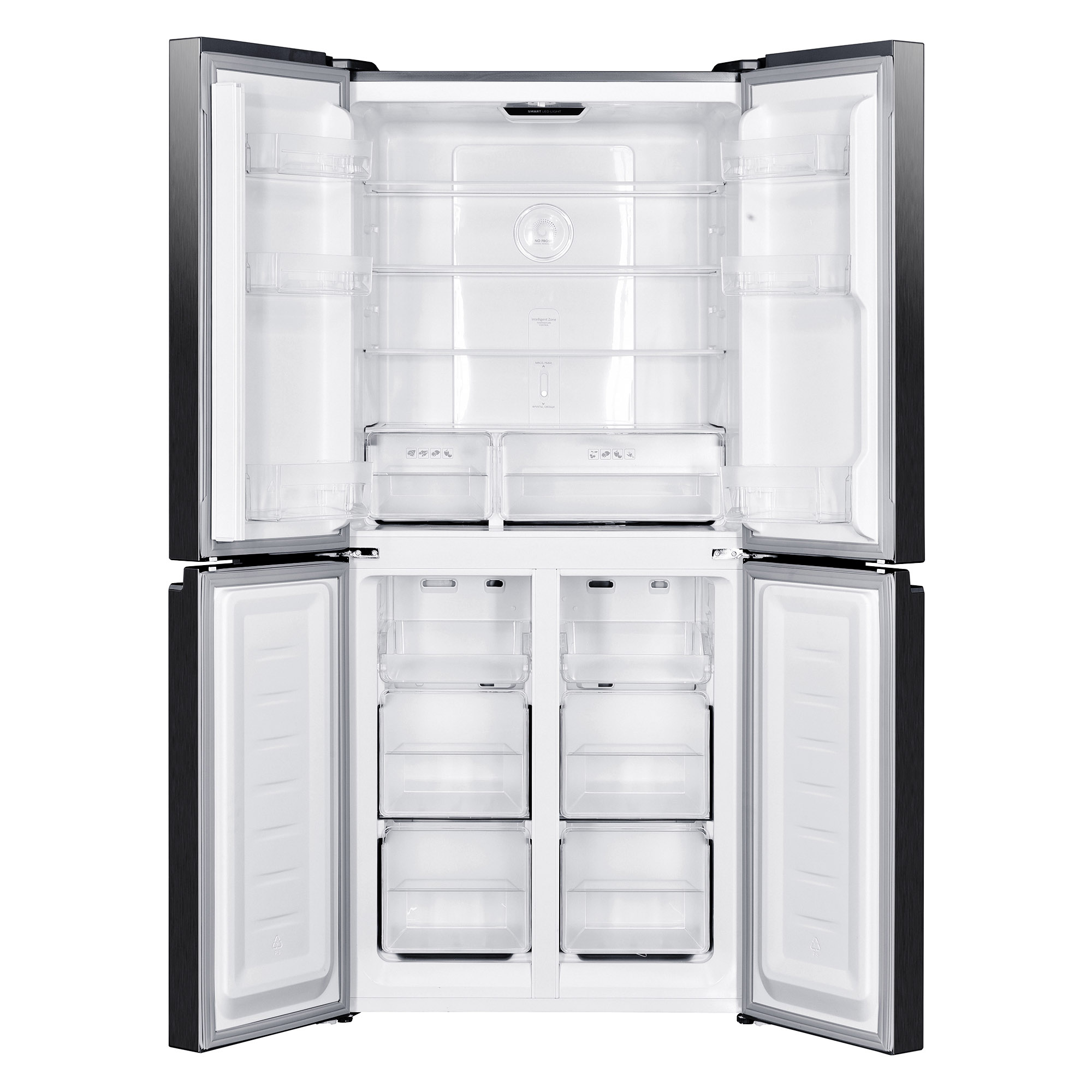 Технология No Frost, использующаяся во всех камерах, не допускает образования наростов льда и инея, а также обеспечивает оптимальный уровень влажности, предотвращая развитие бактерий и плесневых грибков. Тщательно продуманная система вентиляции позволяет избежать обветривания пищи и не допускает обмена запаха между продуктами.