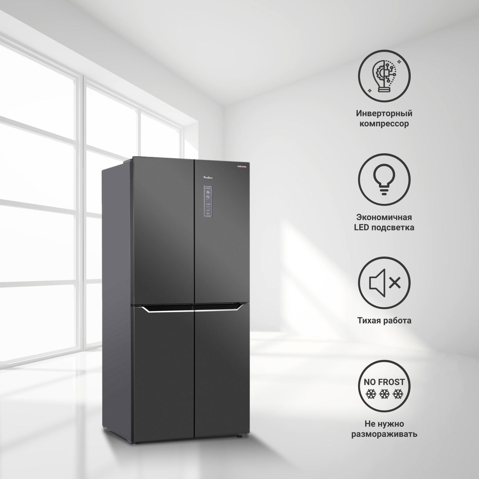 TESLER RCD-480I - это надежная техника для современной кухни. Он чрезвычайно элегантно выглядит и дает возможность хранить большие запасы продуктов. В моделях серии Intelligence используются самые новые технологии, что нашло отражение в их функциональности.