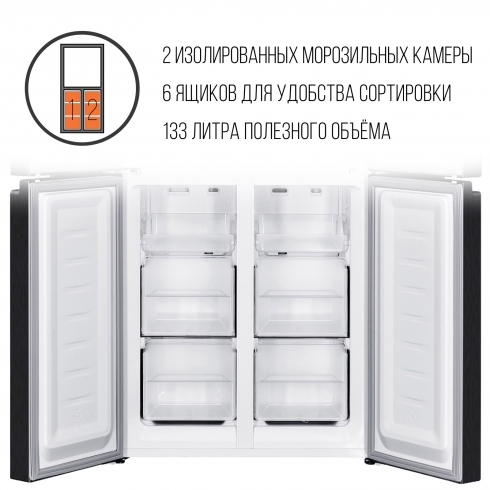 Технология No Frost, использующаяся во всех камерах, не допускает образования наростов льда и инея, а также обеспечивает оптимальный уровень влажности, предотвращая развитие бактерий и плесневых грибков. Тщательно продуманная система вентиляции позволяет избежать обветривания пищи и не допускает обмена запаха между продуктами.