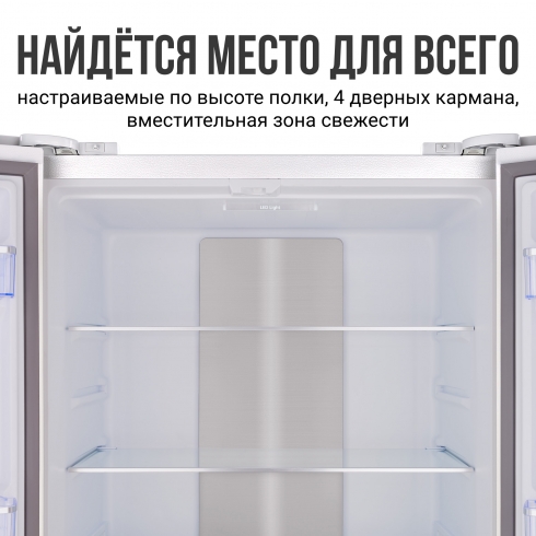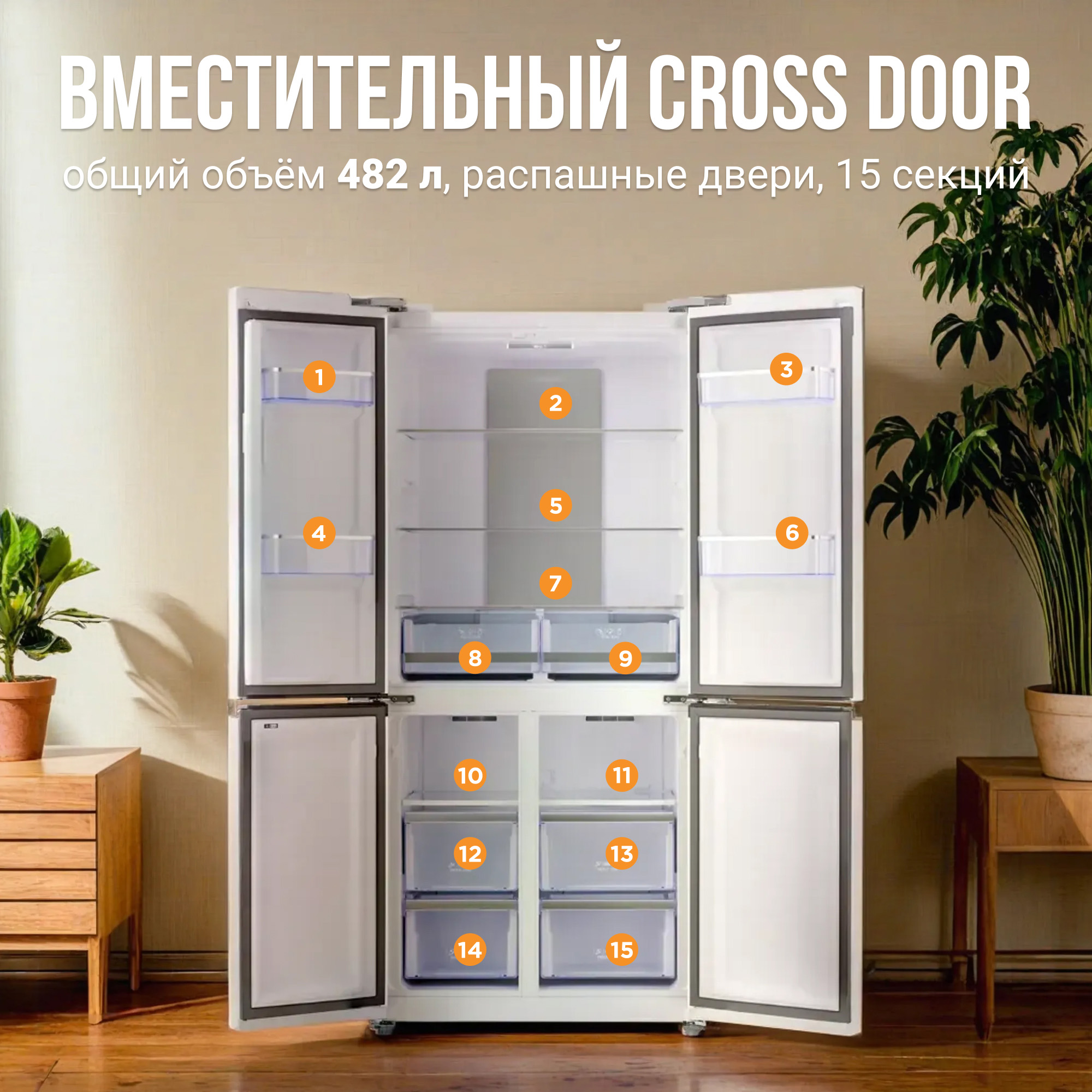 Благодаря системе распашных дверей CROSS DOOR вы можете легко получить непосредственный доступ к содержимому в любом месте, будь то полка в холодильной камере или ящик морозильного отделения. Чтобы достать нужный продукт достаточно открыть лишь одну дверцу. Это значит, что уплотнение дверей прослужит дольше, а из наполовину приоткрытой холодильной камеры меньше уходит холод, соответственно, вы экономите электроэнергию. Модель предлагает гибкие решения для оптимизации пространства внутри. Вы можете убрать некоторые полки, чтобы увеличить объем хранения и уменьшить энергопотребление.