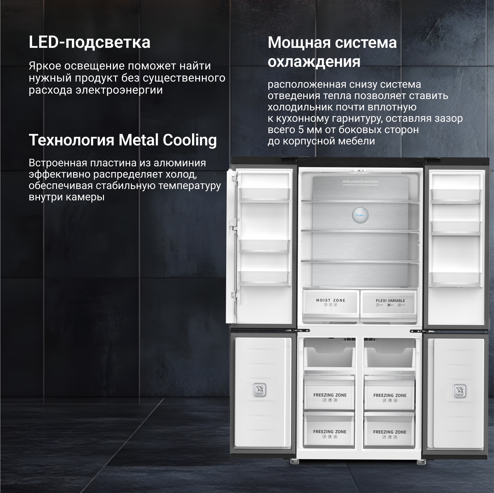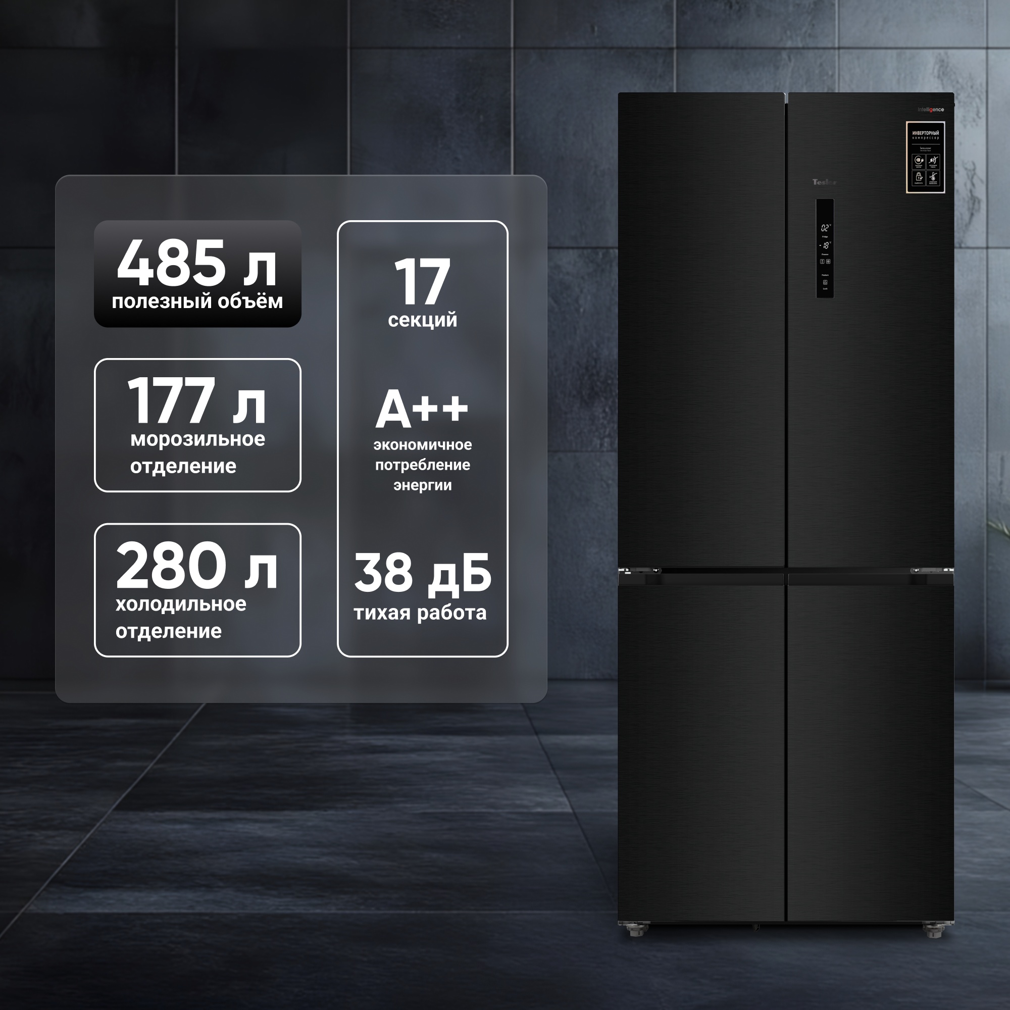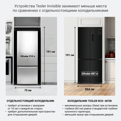 Благодаря встроенному инверторному компрессору холодильник Tesler RCD-487BI тихо работает, позволяет экономить за счёт низкого потребления электроэнергии, быстрее восстанавливает температуру после загрузки большого количества не охлаждённых продуктов, что положительно сказывается на их свежести и сохранности.