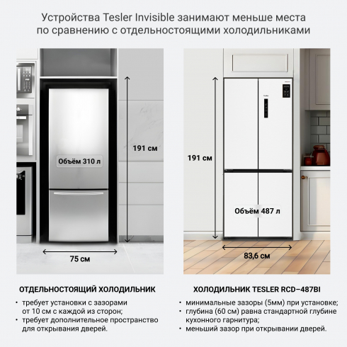 Благодаря встроенному инверторному компрессору холодильник Tesler RCD-487BI тихо работает, позволяет экономить за счёт низкого потребления электроэнергии, быстрее восстанавливает температуру после загрузки большого количества не охлаждённых продуктов, что положительно сказывается на их свежести и сохранности.