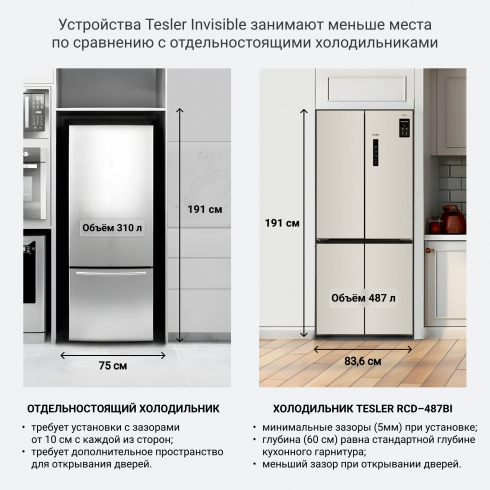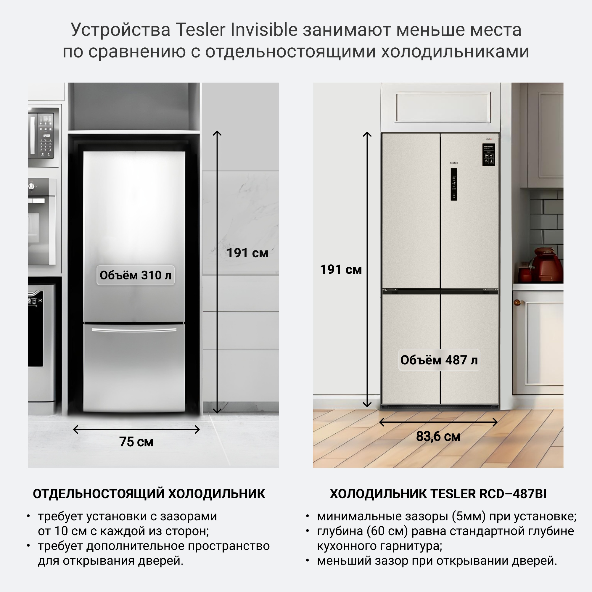 Благодаря встроенному инверторному компрессору холодильник Tesler RCD-487BI тихо работает, позволяет экономить за счёт низкого потребления электроэнергии, быстрее восстанавливает температуру после загрузки большого количества не охлаждённых продуктов, что положительно сказывается на их свежести и сохранности.