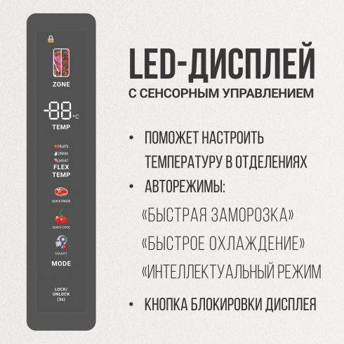 Режим Smart обеспечивает баланс между сохранностью и свежестью продуктов, экономией электроэнергии и удобством использования. Это оптимальный режим для работы камер при балансе энергопотребления и производительности.
