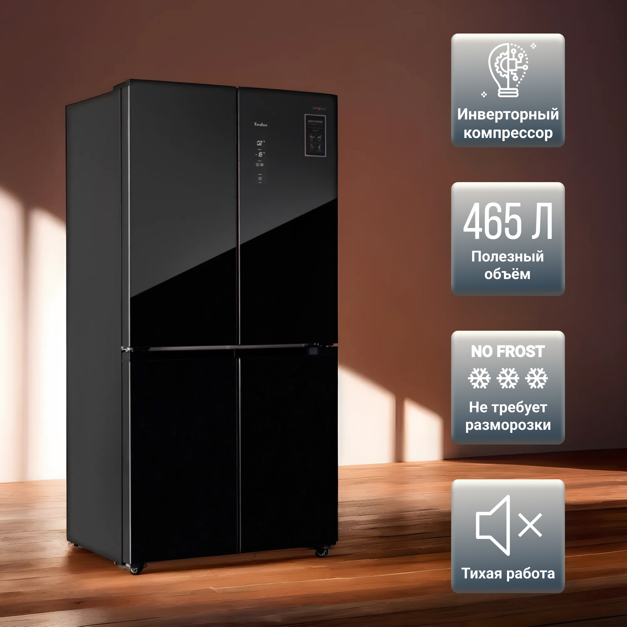 Холодильники Intelligence оборудованы инверторными компрессорами, которые гарантируют постоянство температуры и влажности внутри камер. Компрессоры такого типа работают тихо и потребляют меньше электроэнергии. В холодильниках Tesler компрессор оснащен функцией защиты, благодаря чему обеспечивается долгий срок его службы.