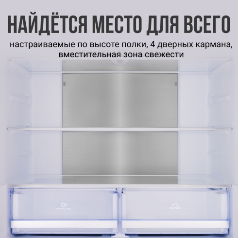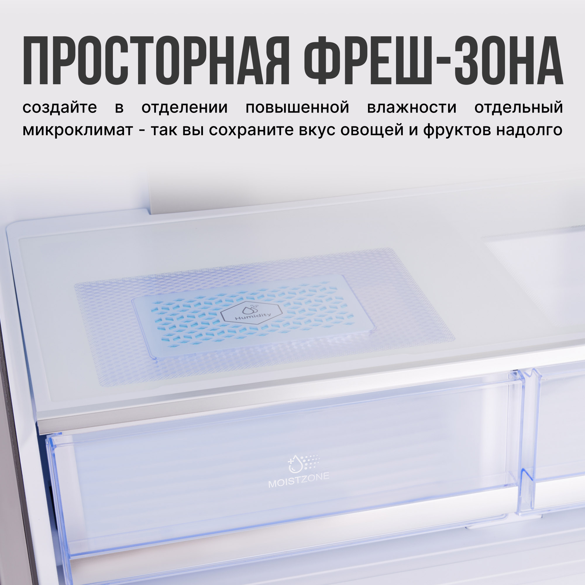 Фреш-зона позаботится о том, чтобы можно было реже покупать фрукты, овощи и зелень. Левая секция - это отделение повышенной влажности для хранения овощей, арбузов, зеленых бананов, клубники и зелени.
