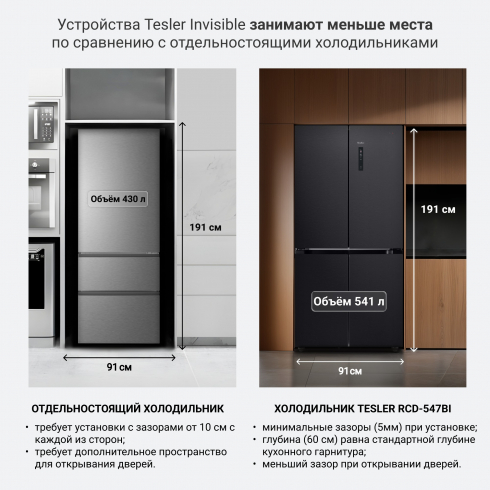 СОВМЕЩАЕТ ПРЕИМУЩЕСТВА ОТДЕЛЬНО СТОЯЩИХ И ВСТРАИВАЕМЫХ ХОЛОДИЛЬНИКОВ