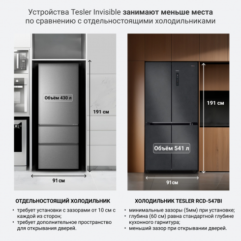 СОВМЕЩАЕТ ПРЕИМУЩЕСТВА ОТДЕЛЬНО СТОЯЩИХ И ВСТРАИВАЕМЫХ ХОЛОДИЛЬНИКОВ