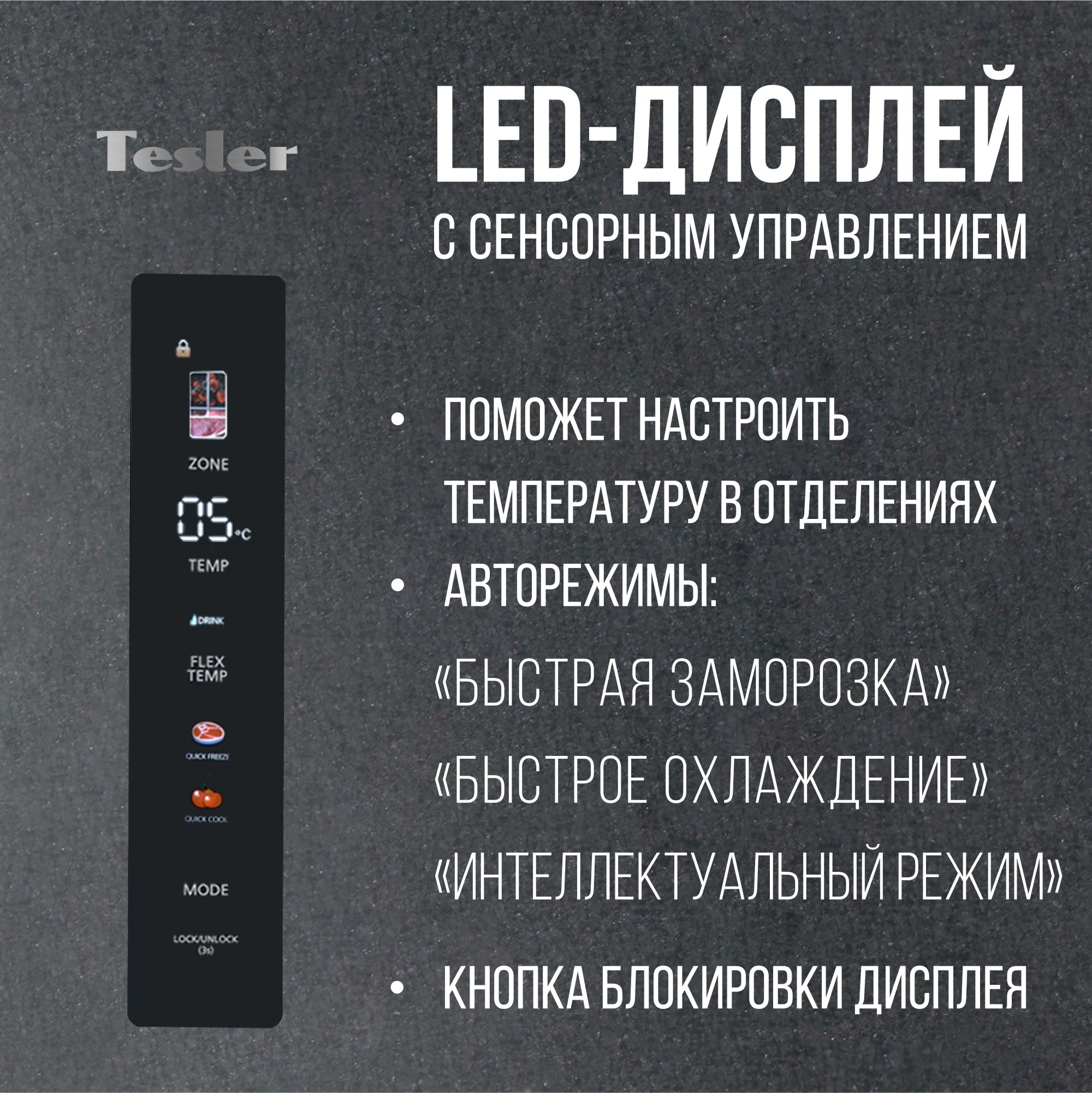 Предлагая широкий выбор настроек и режимов, двухкамерный холодильник TESLER RCD-547BI остаётся простым в управлении, и поможет сохранить свежесть продуктов надолго.