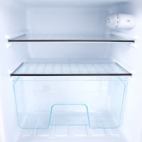 Организация внутреннего пространства максимально удобна: две стеклянные полки, ящик для овощей и фруктов, а также полки на внутренней стороне двери предоставляют разнообразные опции для размещения продуктов. Для удобства хранения яиц предусмотрена специальная подставка. Внутреннее освещение холодильной камеры активируется при открытии дверцы. Отключить подсветку можно воспользовавшись переключателем.