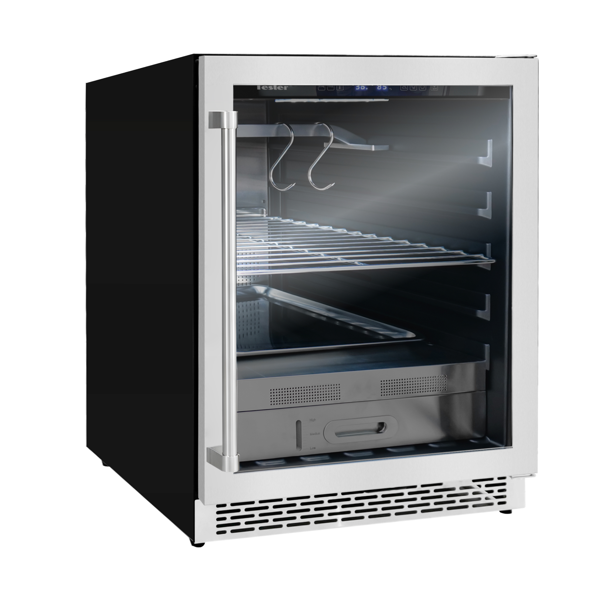 Tesler RDA-120 — это компактный шкаф для сухого вызревания мяса, созданный для тех, кто ценит точность, контроль и профессиональный результат. Он позволяет воспроизвести условия ресторанного dry aging в домашних или профессиональных условиях, сохраняя баланс между технологичностью, эстетикой и удобством использования.