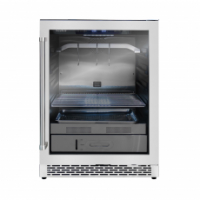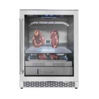 Лаконичный корпус из нержавеющей стали со стеклянной дверцей из трёхслойного ударопрочного стекла с энергосберегающим покрытием LOW-E подчёркивает премиальный характер устройства и делает процесс вызревания визуально открытым. Благодаря сдержанному дизайну шкаф гармонично вписывается в современные кухни и гастрономические пространства, а возможность встраивания в мебель расширяет сценарии размещения.