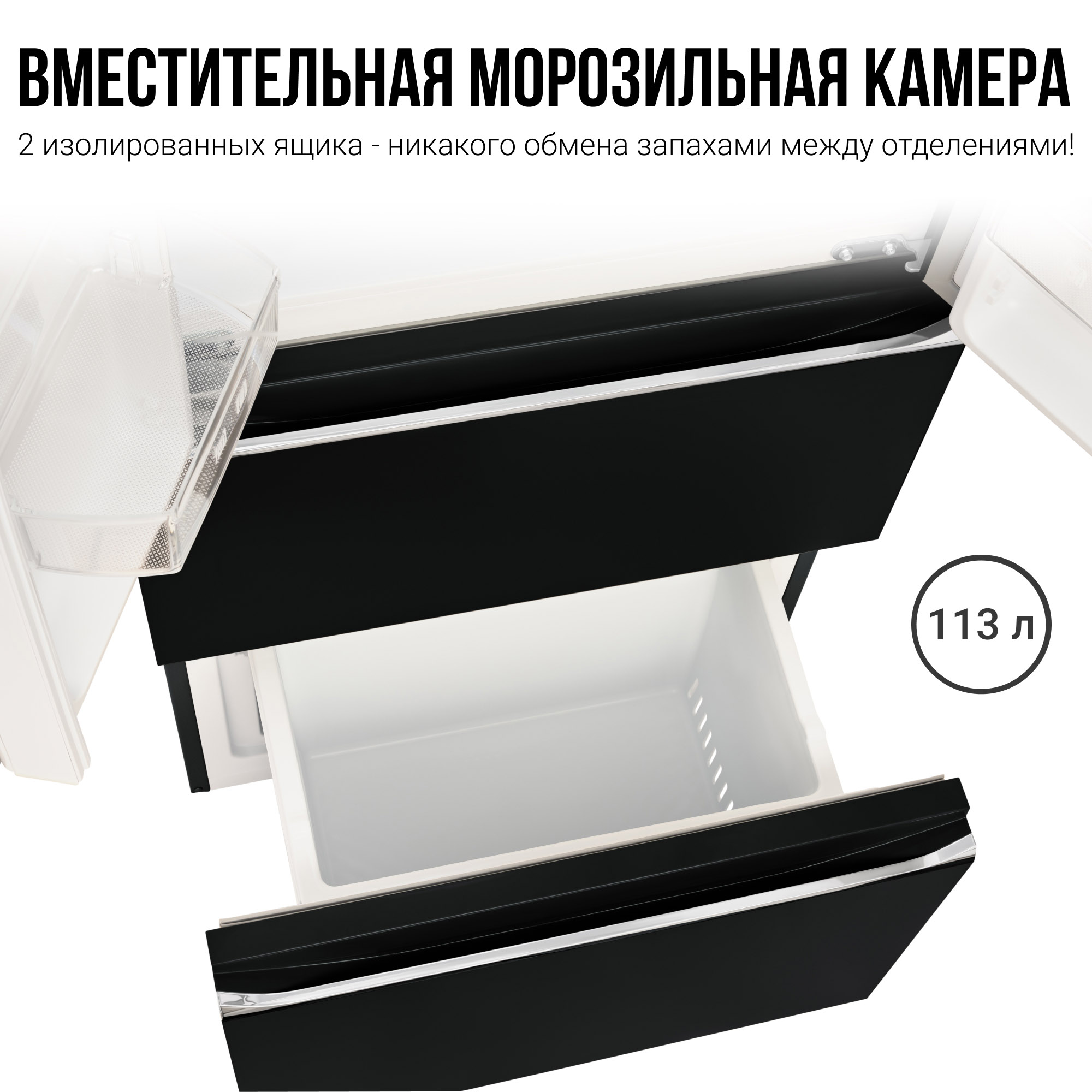 Холодильники серии Tesler RFD-361i отличаются высокой вместительностью благодаря полезному объему в 337 литров. Удобно расположить продукты питания теперь не проблема, а система дверей French Door (Френч-дор) обеспечивает максимально лёгкий доступ ко всему содержимому холодильника. Морозильное отделение делят на две части 2 независимых ящика, а значит никакого обмена запахами между продуктами и потерь холода при открывании.