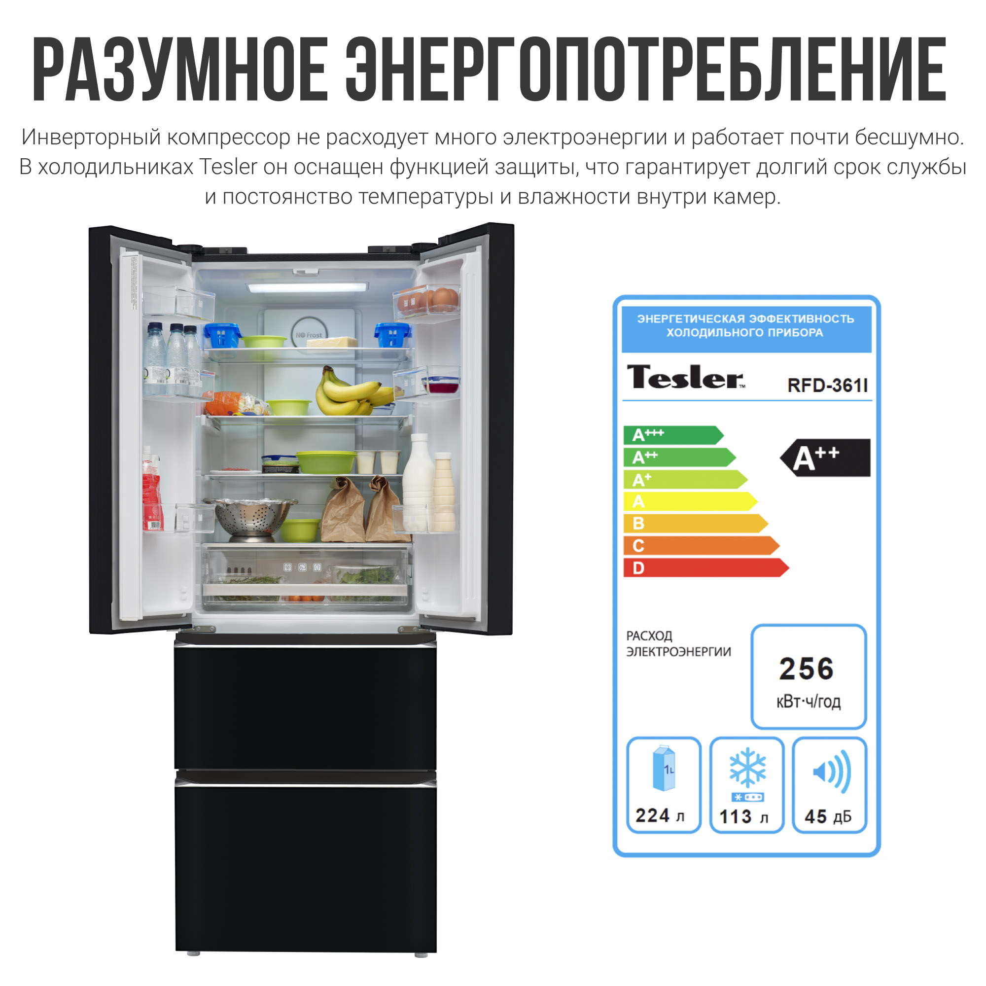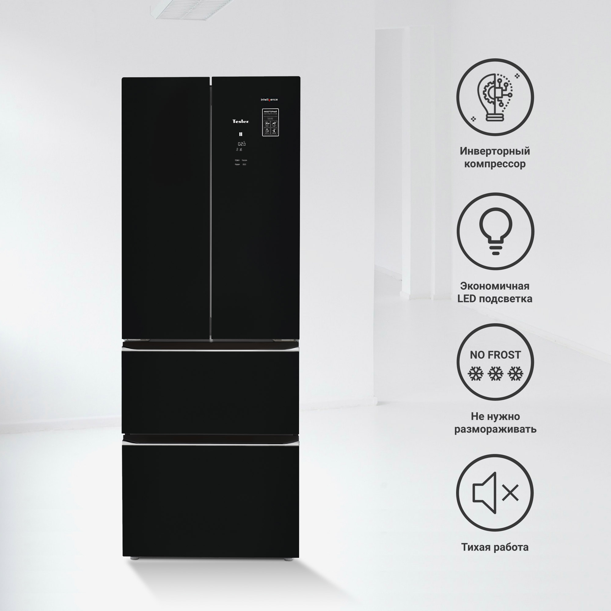 Холодильники серии Tesler Intelligence RFD-361i оснащены современными компрессорами инверторного типа, которые позволяют не только сэкономить электроэнергию, но и значительно снизить шум при работе. Отдельно заслуживают внимания материалы, которые используются в отделке холодильников Tesler. Взгляд или прикосновение, осязание поверхности - Вы гарантировано получите приятные ощущения! Будь то пластик, металл или стекло Вы можете с уверенностью рассчитывать на бескомпромиссное качество, а следовательно и долговечность. Все используемые материалы экологичны и безвредны для здоровья.