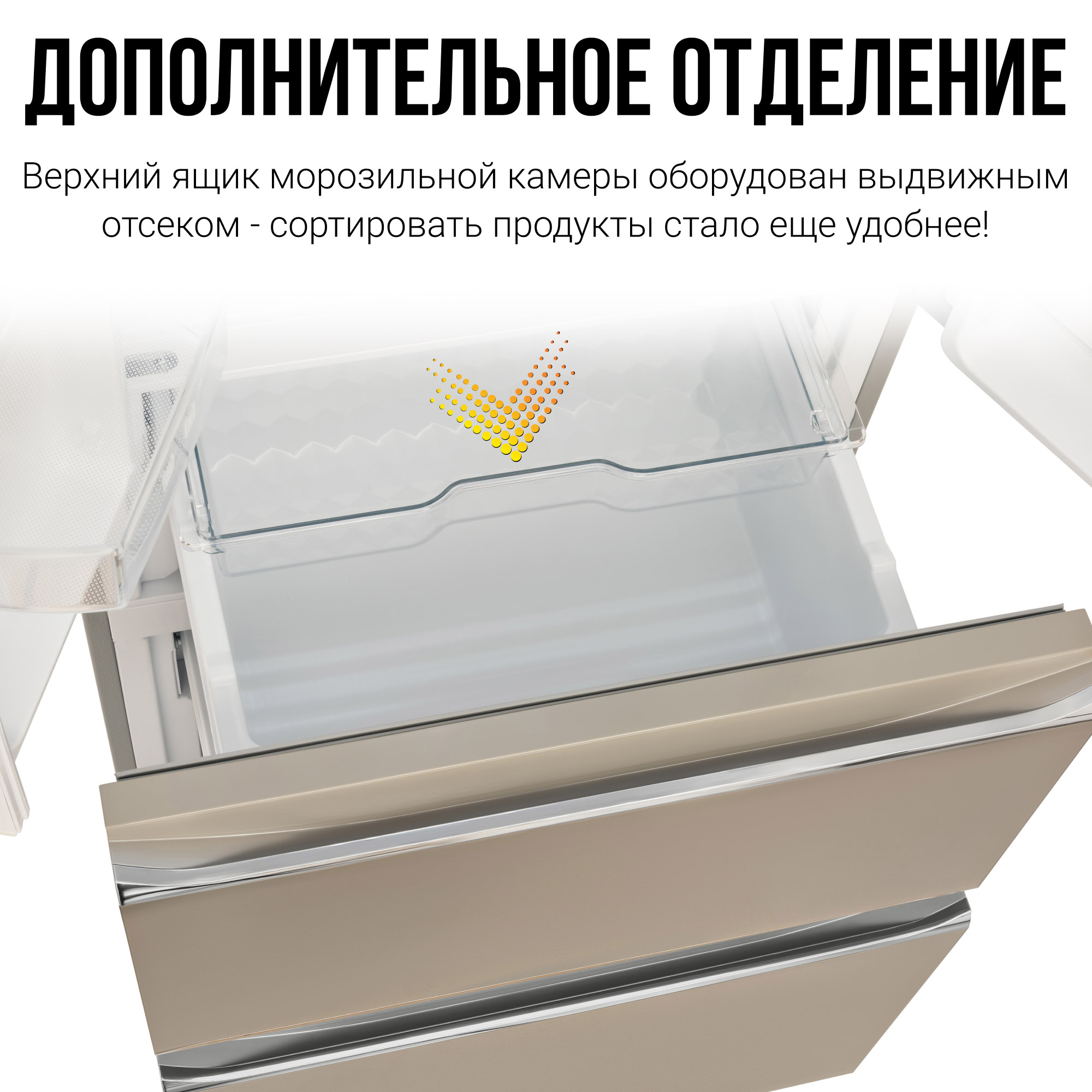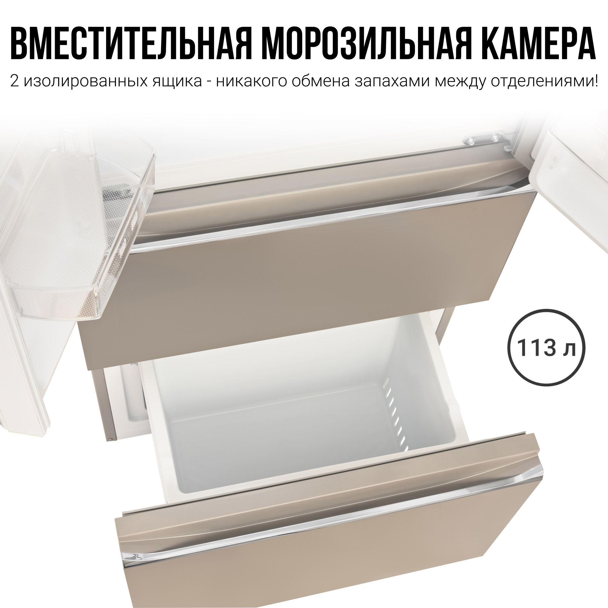 Холодильники серии Tesler RFD-361i отличаются высокой вместительностью благодаря полезному объему в 337 литров. Удобно расположить продукты питания теперь не проблема, а система дверей French Door (Френч-дор) обеспечивает максимально лёгкий доступ ко всему содержимому холодильника. Морозильное отделение делят на две части 2 независимых ящика, а значит никакого обмена запахами между продуктами и потерь холода при открывании.