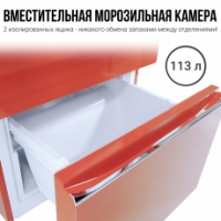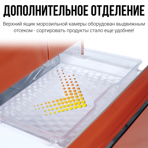 Верхний ящик морозильной камеры оборудован выдвижным отсеком - сортировать продукты стало еще удобнее! Здесь можно хранить компактные упаковки, например, мороженое, замороженные полуфабрикаты, масло, молоко или лёд.