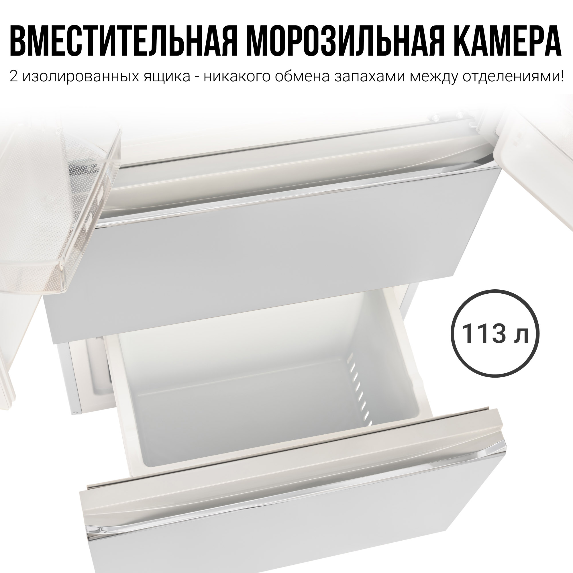 • Распашные двери холодильной и выдвижные ящики морозильной камер - "френч дор".