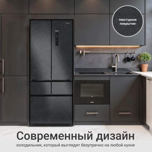 Стильная текстурная отделка придает корпусу устройства элегантность, делая этот холодильник незаменимой деталью современного кухонного интерьера.