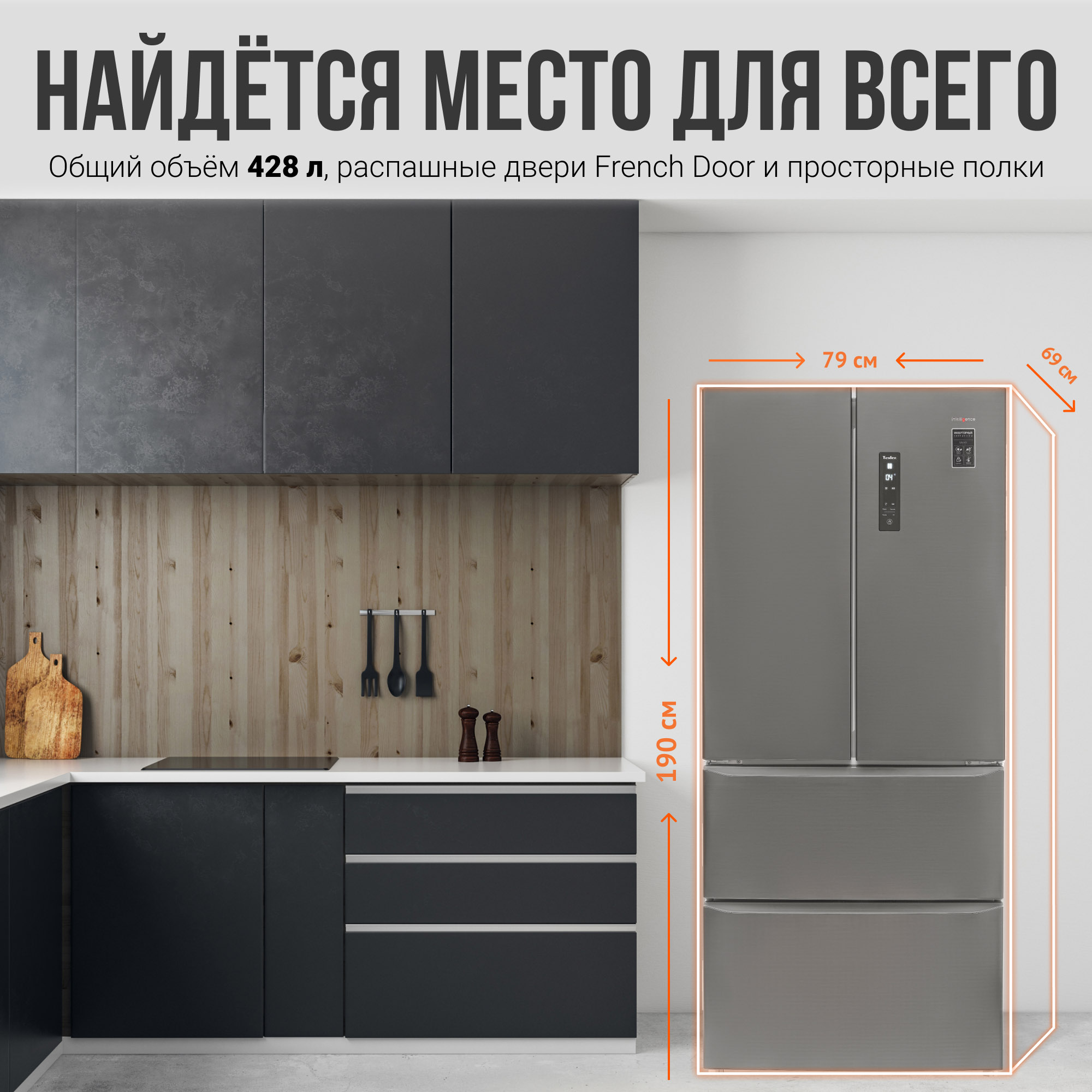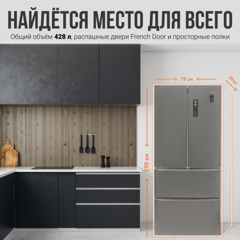 Купить холодильник Tesler Intelligence RFD-430i Френч-дор Вы можете через интернет в магазинах наших официальных партнёров.