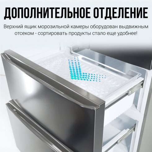 Холодильники серии Tesler RFD-430i отличаются высокой вместительностью благодаря полезному объему в 408 литров. Удобно расположить продукты питания теперь не проблема, а система дверей French Door (Френч-дор) обеспечивает максимально лёгкий доступ ко всему содержимому холодильника. 134 литр морозильного отделения делят на две части два независимых ящика.