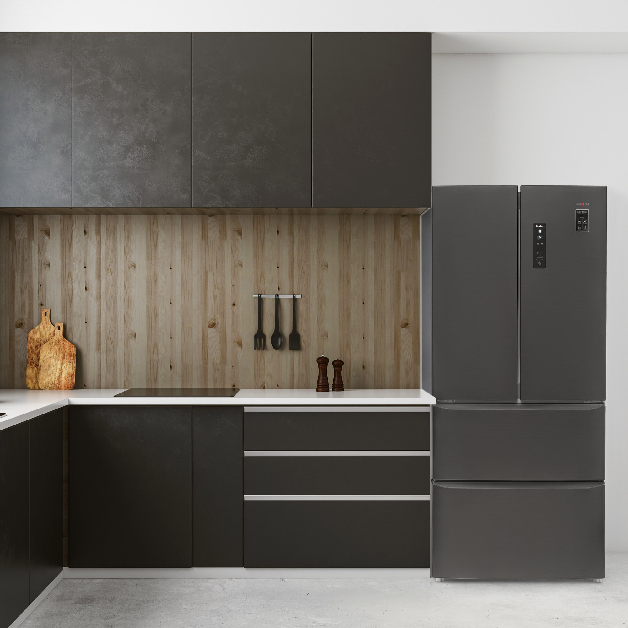 Холодильники серии Tesler Intelligence RFD-430i - это надёжность и экономичность, облачённые в правильные формы корпуса, выполненного из высококачественных экологичных материалов в двух цветовых исполнениях: фактурный "Графит" и благородный "Белый".