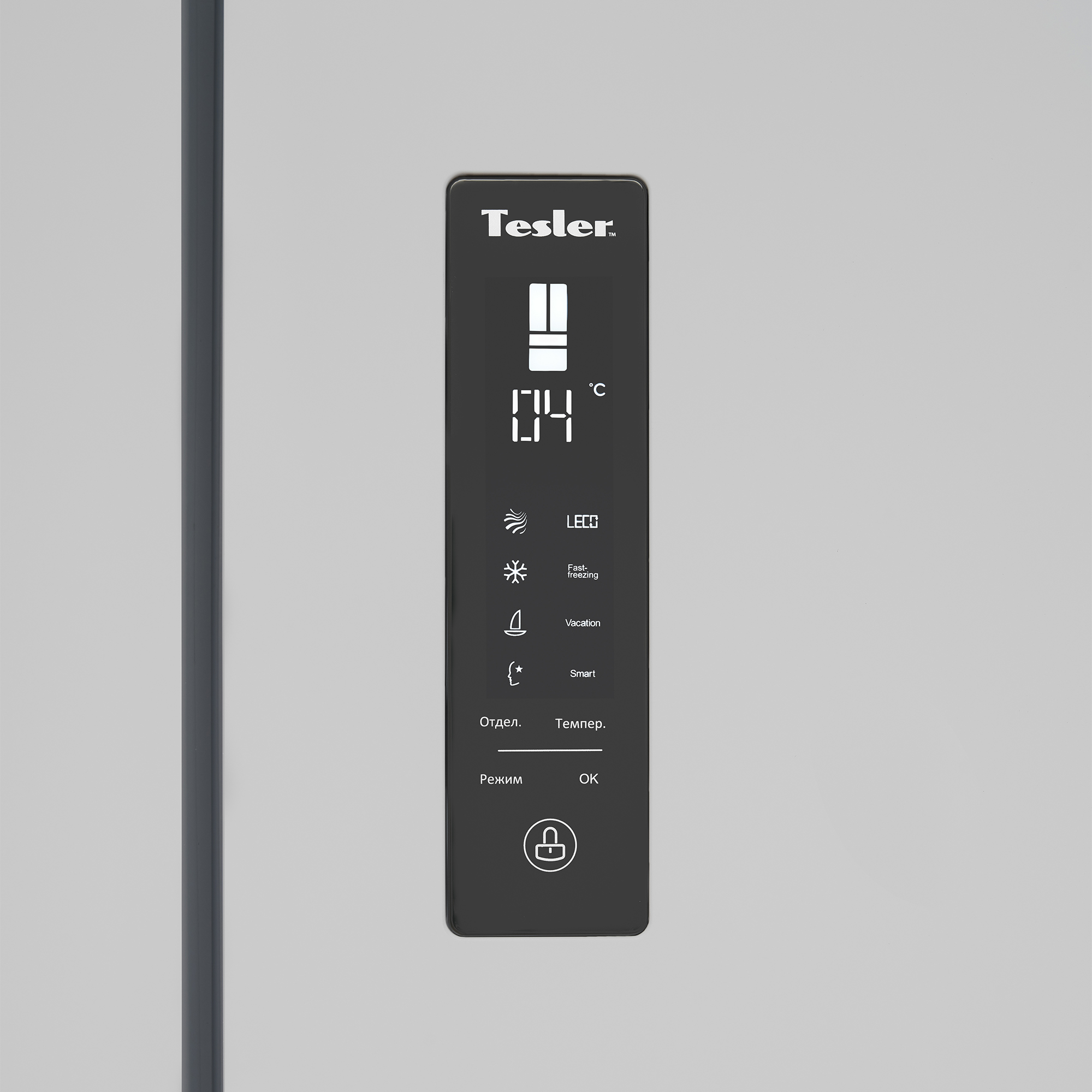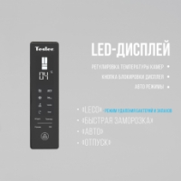 Помимо системы NoFrost, которая обеспечивает удобство использования без разморозки и образования льда в камерах холодильника, модель Tesler Intelligence RFD-430i оснащается системой подсветки Smart Light и зональным фреш-отсеком Intelligent Zone с независимой настройкой влажности. Светодиодный LED дисплей приятного для глаза белого цвета и сенсорная панель помогает точно контролировать параметры температуры в обеих камерах холодильника. Предусмотрены режимы заморозки: "Авто", "Быстрая заморозка" и "Быстрое охлаждение".