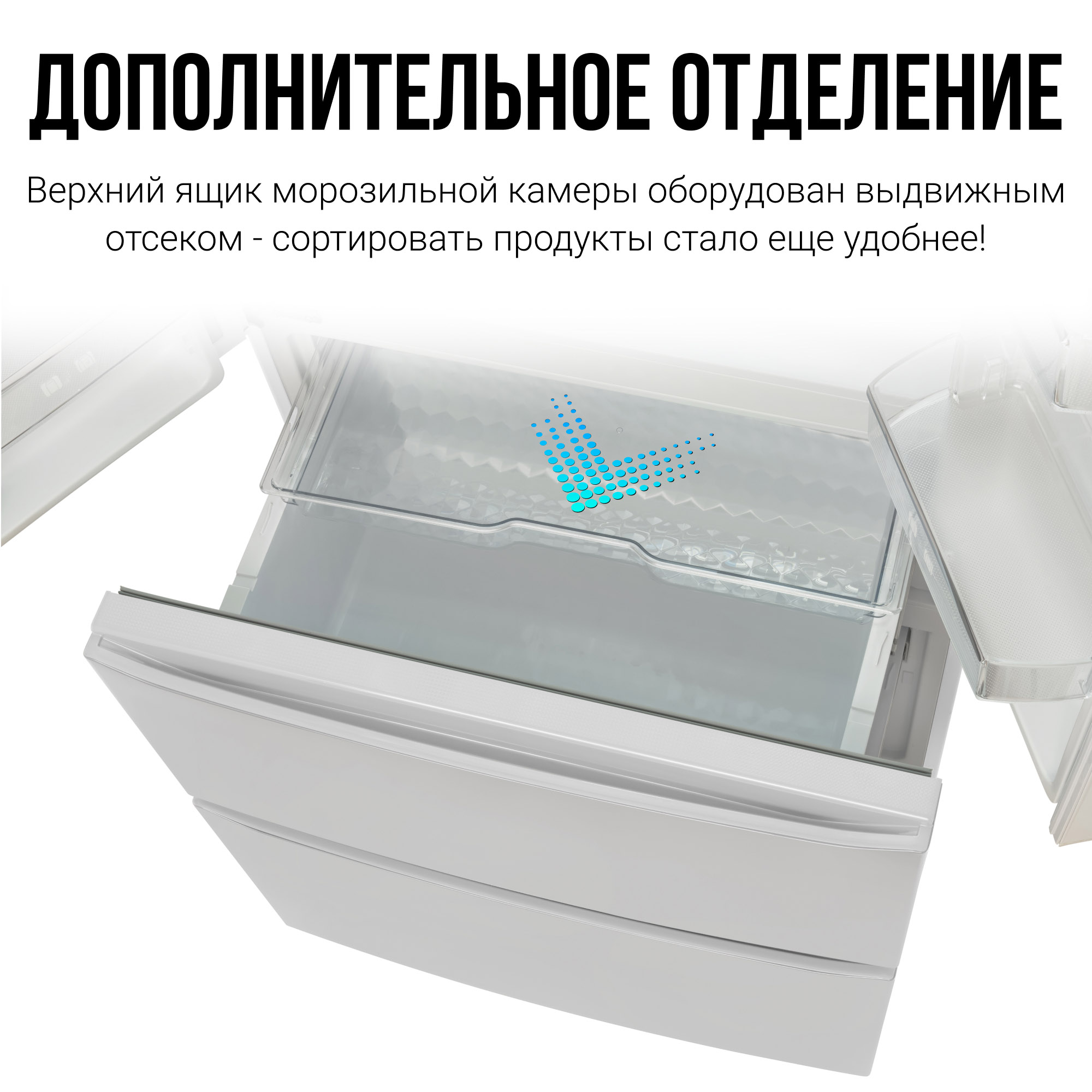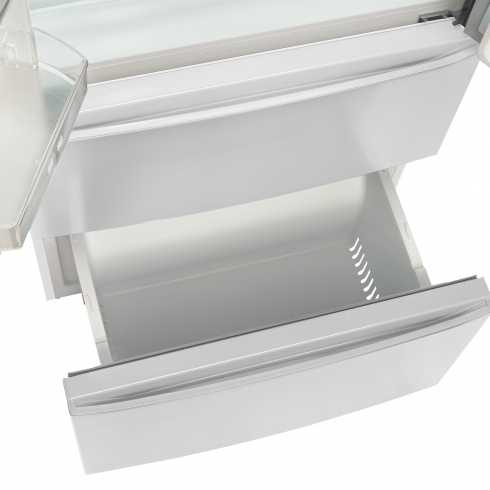 Холодильники серии Tesler RFD-430i отличаются высокой вместительностью благодаря полезному объему в 408 литров. Удобно расположить продукты питания теперь не проблема, а система дверей French Door (Френч-дор) обеспечивает максимально лёгкий доступ ко всему содержимому холодильника. 134 литр морозильного отделения делят на две части два независимых ящика.