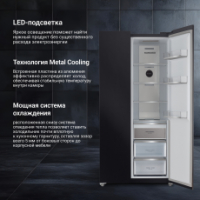 Стильная графитовая отделка придает корпусу устройства элегантность, делая этот холодильник незаменимой деталью современного кухонного интерьера.