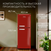 Ретро-стиль холодильника RT-110 наполняет пространство уютной эстетикой, а его компактные размеры позволяют рационально использовать пространство в небольших помещениях. Поэтому это идеальный вариант для небольших кухонь, квартир – студий и дачных домов.