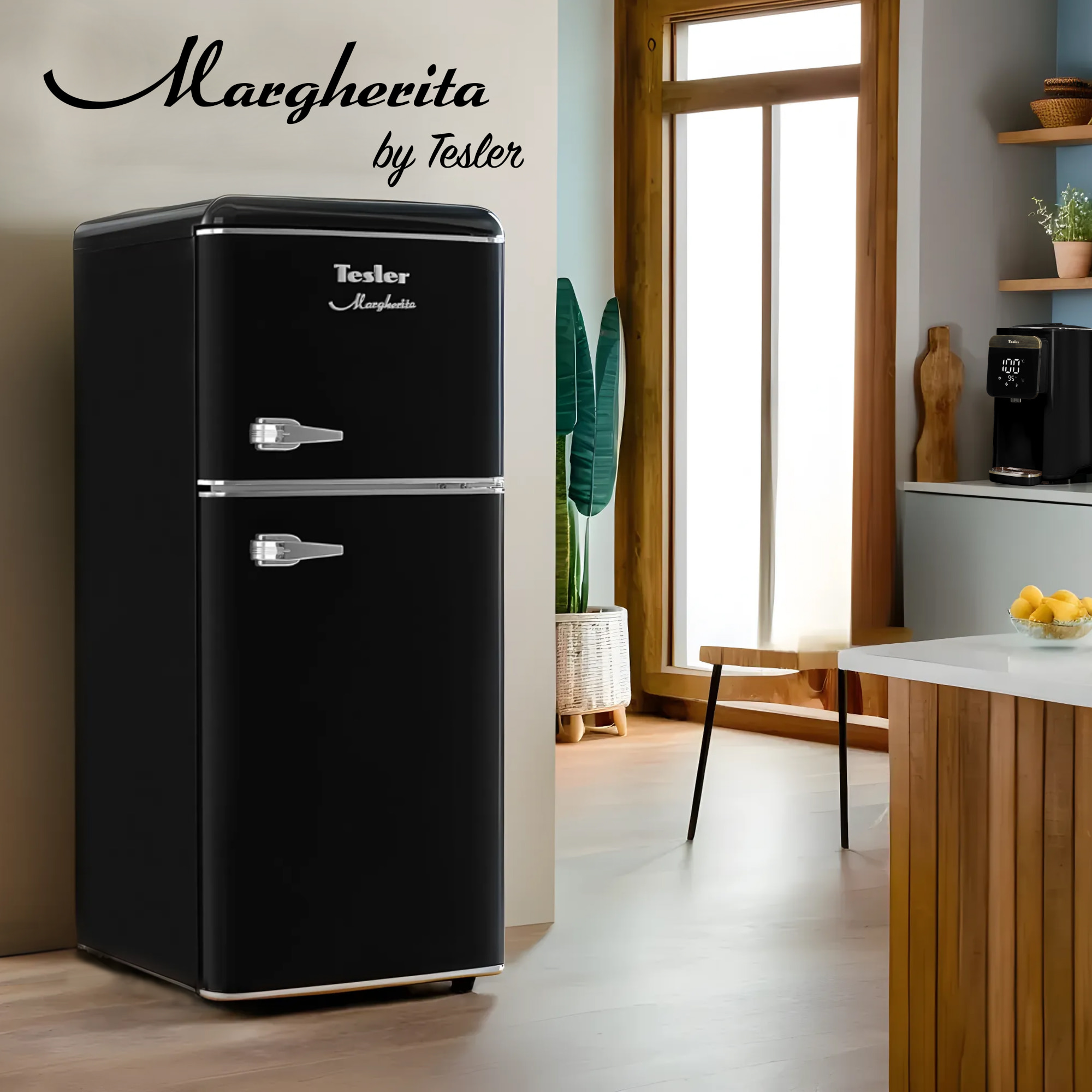 Холодильник RT-132 BLACK прекрасно сочетается с чайником, тостером и термопотом комплектов Elizabeth и Margherita. Приобретённая в дополнение к холодильнику, техника Tesler в ретро-стиле сделает интерьер кухни гармоничным и запоминающимся.