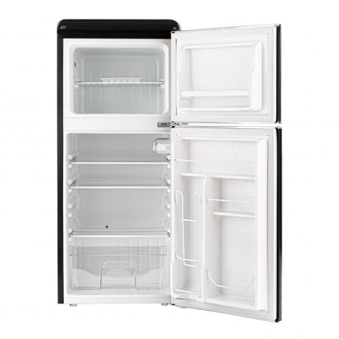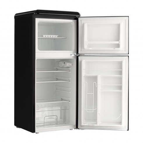 Tesler RT-132 сочетает в себе надежное охлаждение, элегантность и функциональность. Выполненный в ретро-стиле, он придаёт особый шарм пространству вокруг, что делает его идеальным дополнением к кухне. Хромированные ручки с надёжным креплением не ослабнут независимо от того, как часто вы открываете дверцы.