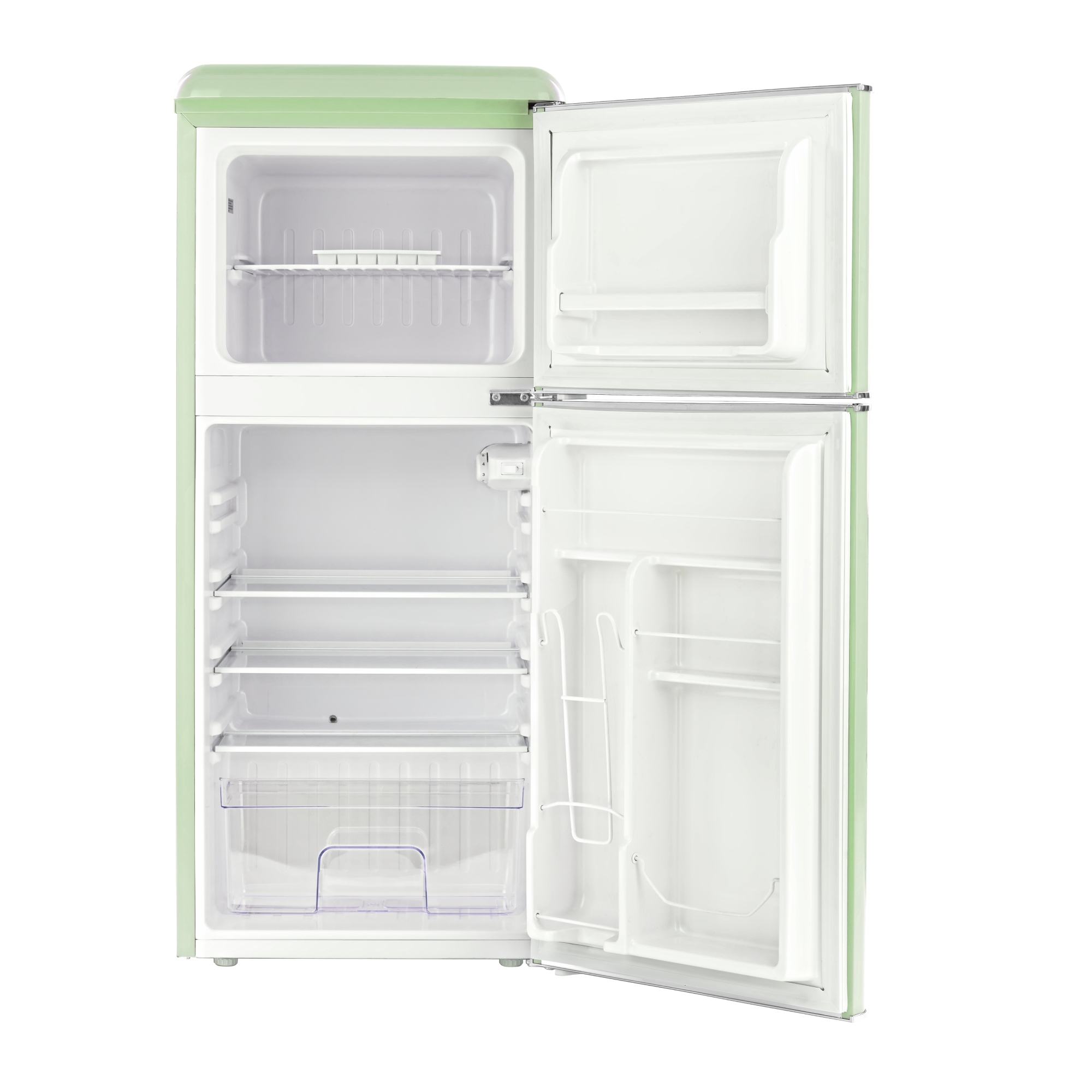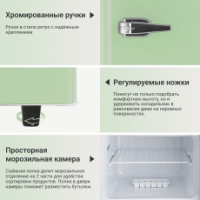 Tesler RT-132 сочетает в себе надежное охлаждение, элегантность и функциональность. Выполненный в ретро-стиле, он придаёт особый шарм пространству вокруг, что делает его идеальным дополнением к кухне. Хромированные ручки с надёжным креплением не ослабнут независимо от того, как часто вы открываете дверцы.