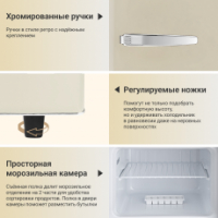 Холодильник RT-152 BEIGE прекрасно сочетается с чайником, тостером и термопотом комплектов Elizabeth и Margherita. Приобретённая в дополнение к холодильнику, техника Tesler в ретро-стиле сделает интерьер кухни гармоничным и запоминающимся.