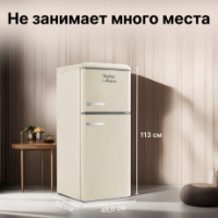 • Отдельностоящий холодильник Tesler RT-152 сочетает в себе классический ретро-дизайн и современные функции.