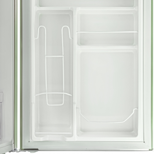 Морозильное отделение с полезным объемом 38 л предлагает достаточно места для замораживания продуктов, и разделено на две части для удобства сортировки продуктов. В дверце также есть одна небольшая полка.