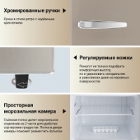 Tesler RT-152  сочетает в себе надежное охлаждение, элегантность и функциональность. Выполненный в ретро-стиле, он придаёт особый шарм пространству вокруг, что делает его идеальным дополнением к кухне. Хромированные ручки с надёжным креплением не ослабнут независимо от того, как часто вы открываете дверцы.
