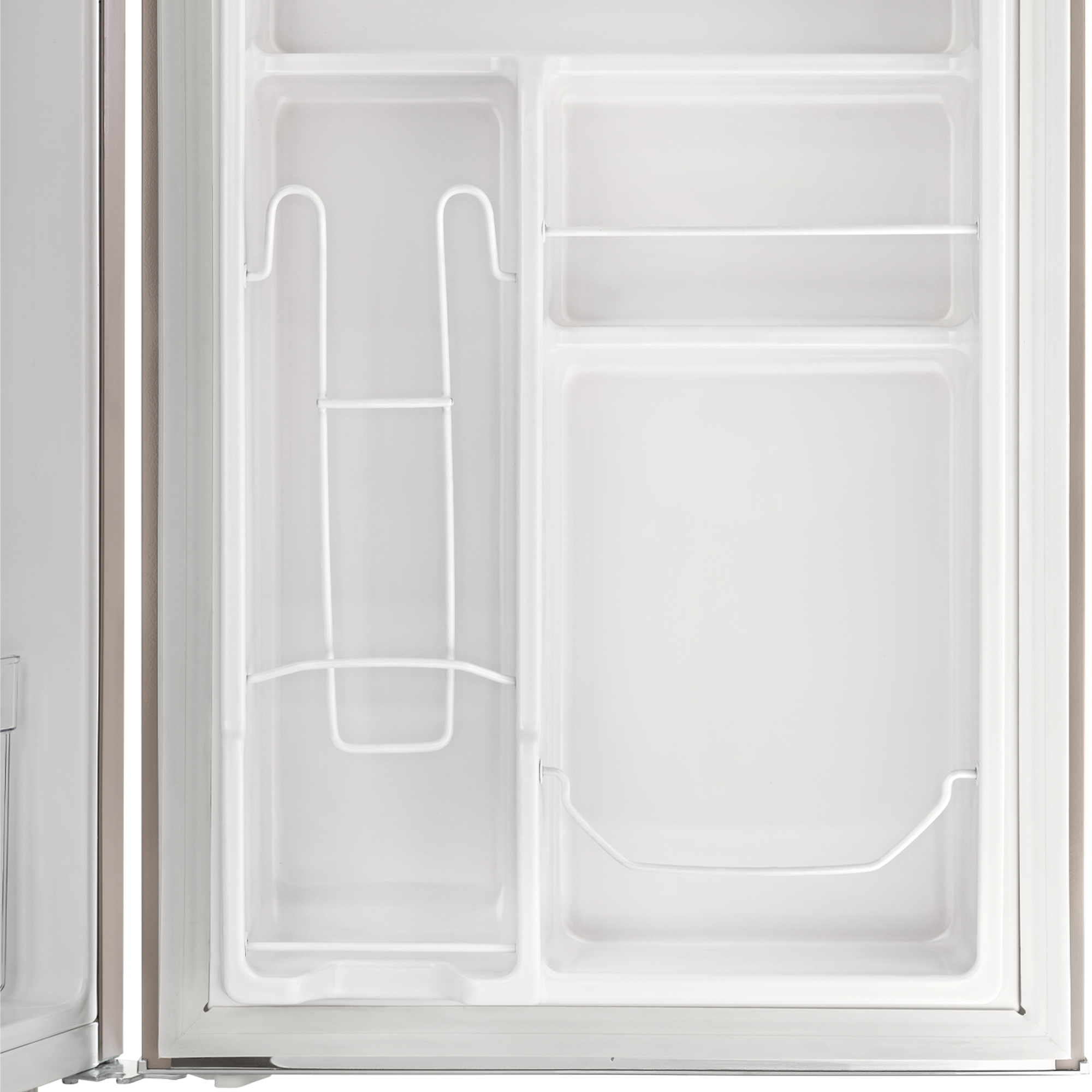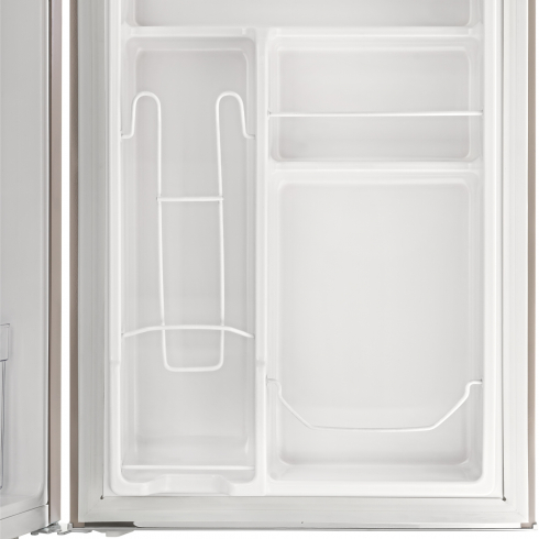 Морозильное отделение с полезным объемом 38 л предлагает достаточно места для замораживания продуктов, и разделено на две части для удобства сортировки продуктов. В дверце также есть одна небольшая полка.