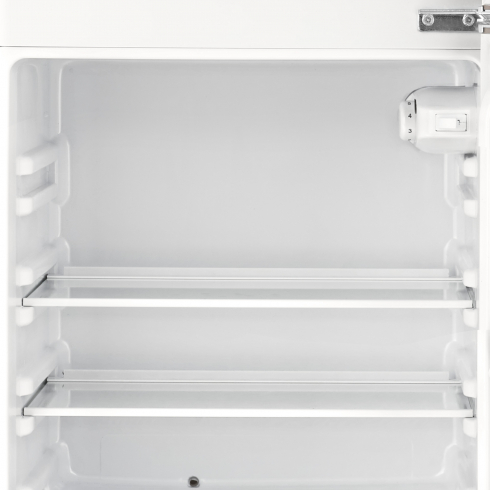 Холодильное отделение предоставляет полезный объем 167 л, внутреннее освещение облегчает просмотр содержимого. Съемные стеклянные полки можно переставить удобным образом, а внизу располагается вместительный ящик для овощей и фруктов. В дверце помимо полок есть держатели для банок, из которых легко доставать напитки.
