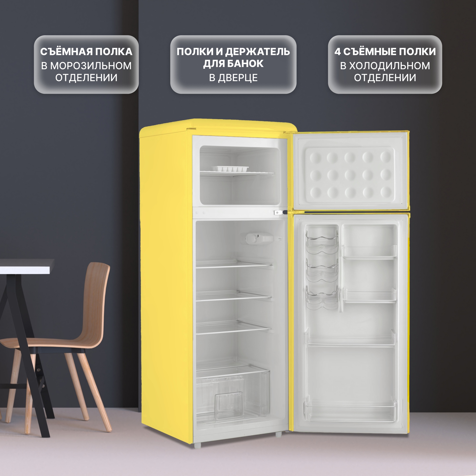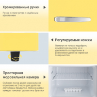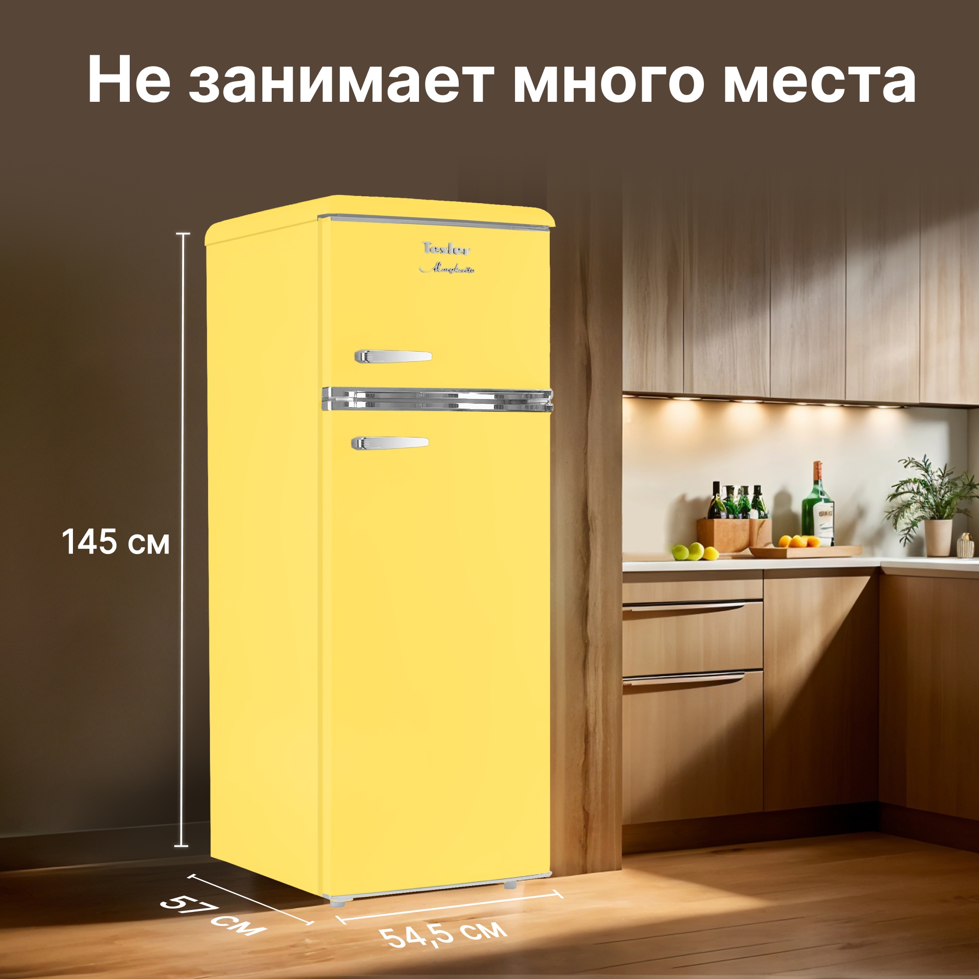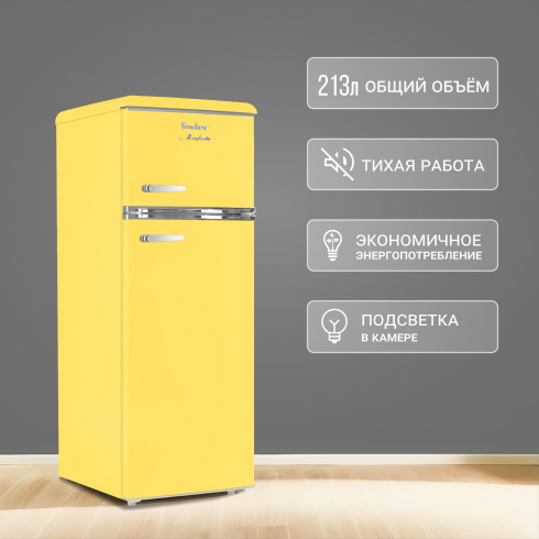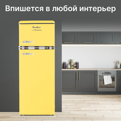 Холодильник RT-215 YELLOW прекрасно сочетается с чайником, тостером и термопотом комплектов Elizabeth и Margherita. Приобретённая в дополнение к холодильнику, техника Tesler в ретро-стиле сделает интерьер кухни гармоничным и запоминающимся.