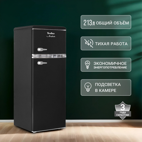 Холодильник Tesler RT-217 сочетает в себе надежное охлаждение, элегантность и функциональность. Выполненный в ретро-стиле, он придаёт особый шарм пространству вокруг, что делает его идеальным дополнением к кухне. Модель доступна в черном, красном, бежевом и песочно-сером цветах, что позволяет выбрать вариант, который органично впишется в ваш интерьер.