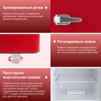 Морозильное отделение с полезным объемом 45 л предлагает достаточно места для замораживания продуктов. Для удобства сортировки оно разделено на две части съемной полкой. Благодаря ручной системе размораживания поддерживать чистоту в холодильнике не составит труда.