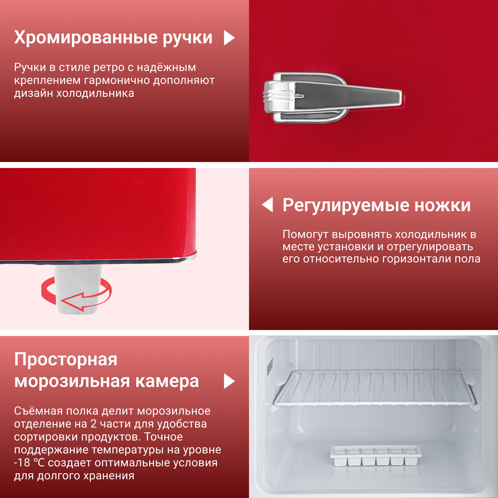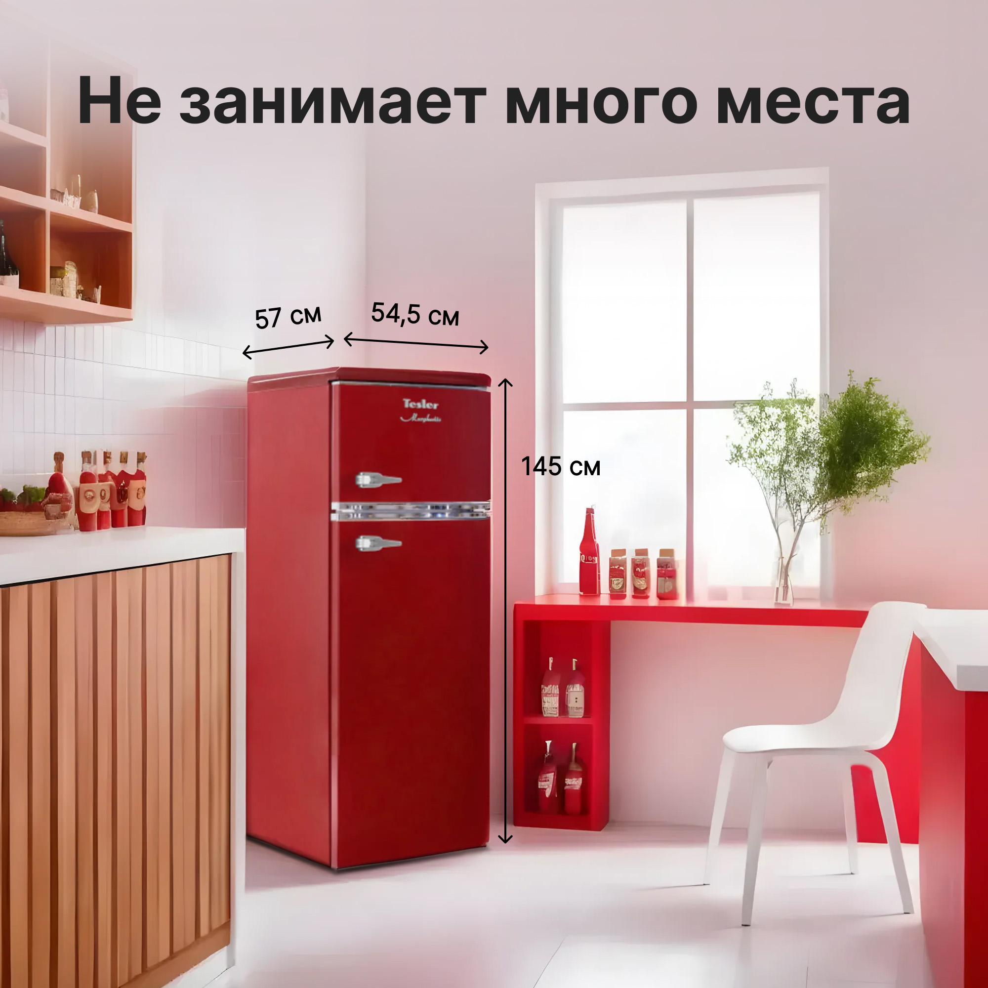 Холодильник Tesler RT-217 сочетает в себе надежное охлаждение, элегантность и функциональность. Выполненный в ретро-стиле, он придаёт особый шарм пространству вокруг, что делает его идеальным дополнением к кухне. Модель доступна в черном, красном, бежевом и песочно-сером цветах, что позволяет выбрать вариант, который органично впишется в ваш интерьер.
