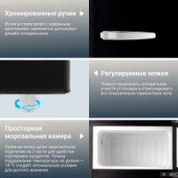Хромированные ручки с надёжным креплением не ослабнут независимо от того, как часто вы открываете дверцы. Регулируемые передние ножки помогут подобрать комфортную высоту.