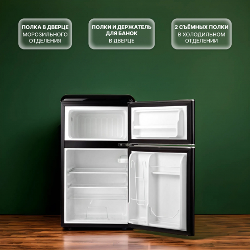 Холодильник Tesler RT-95 сочетает в себе надежное охлаждение, элегантность и функциональность. Выполненный в ретро-стиле, он придаёт особый шарм пространству вокруг, что делает его идеальным дополнением к кухне. Благодаря небольшим размерам он может быть установлен даже в ультракомпактных пространствах.