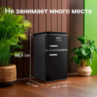 Холодильник Tesler RT-95 сочетает в себе надежное охлаждение, элегантность и функциональность. Выполненный в ретро-стиле, он придаёт особый шарм пространству вокруг, что делает его идеальным дополнением к кухне. Благодаря небольшим размерам он может быть установлен даже в ультракомпактных пространствах.
