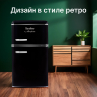 • Холодильник Tesler RT-95 выполнен в стиле ретро, и доступен в нескольких цветах: черный, бежевый, зеленый, красный, песочно-серый и желтый.